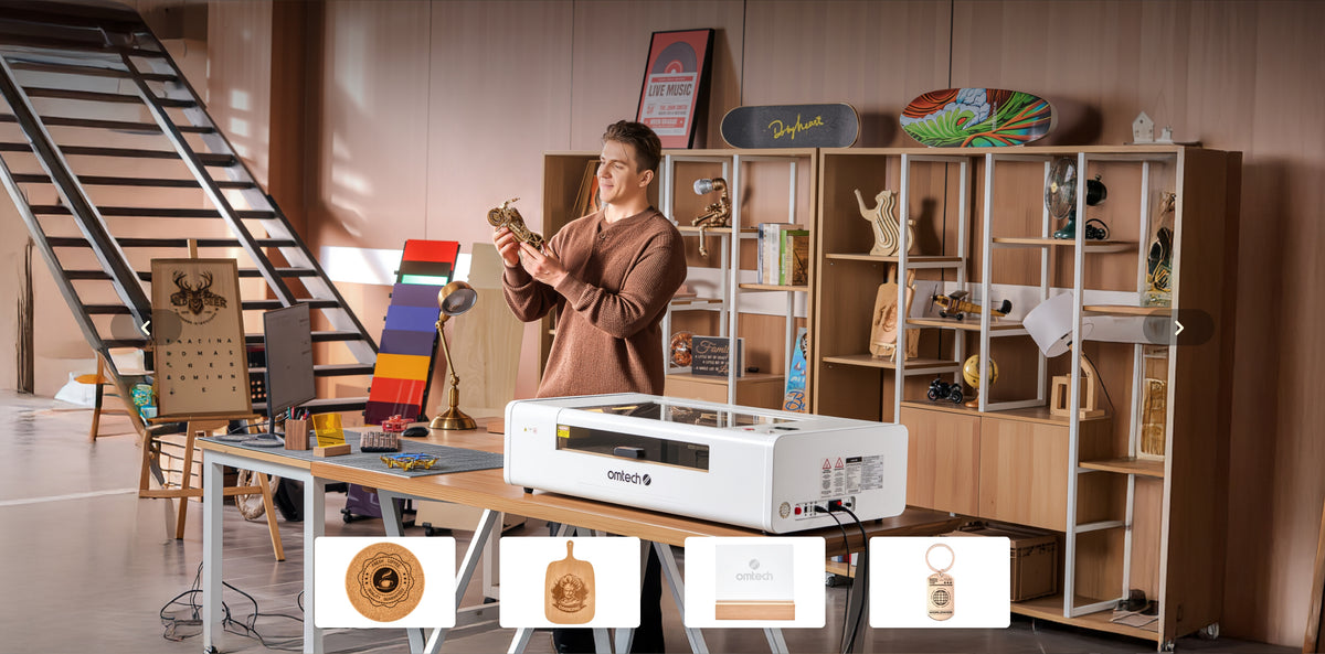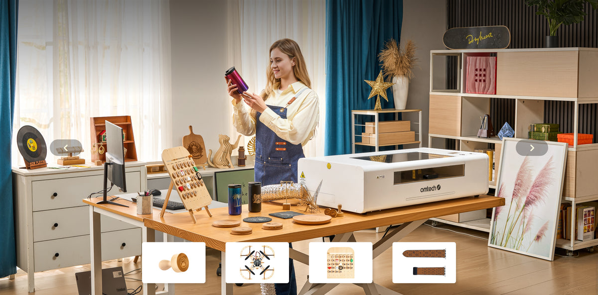 Einfache Bearbeitung von Holz, Acryl, Leder, Stoff und beschichtetem Metall durch Schneiden, Gravieren und Formen