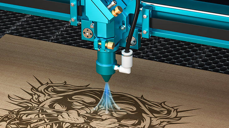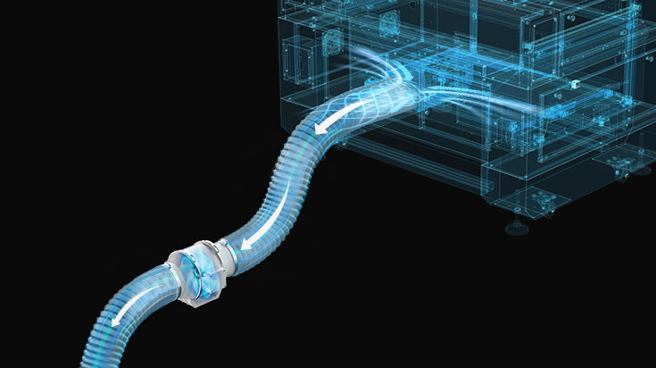 Der aufgeladene Lüfter, mit einem 66% höheren Luftstrom bei 540m³/h, evakuiert schnell Rauch und Staub für klarere Gravuren.